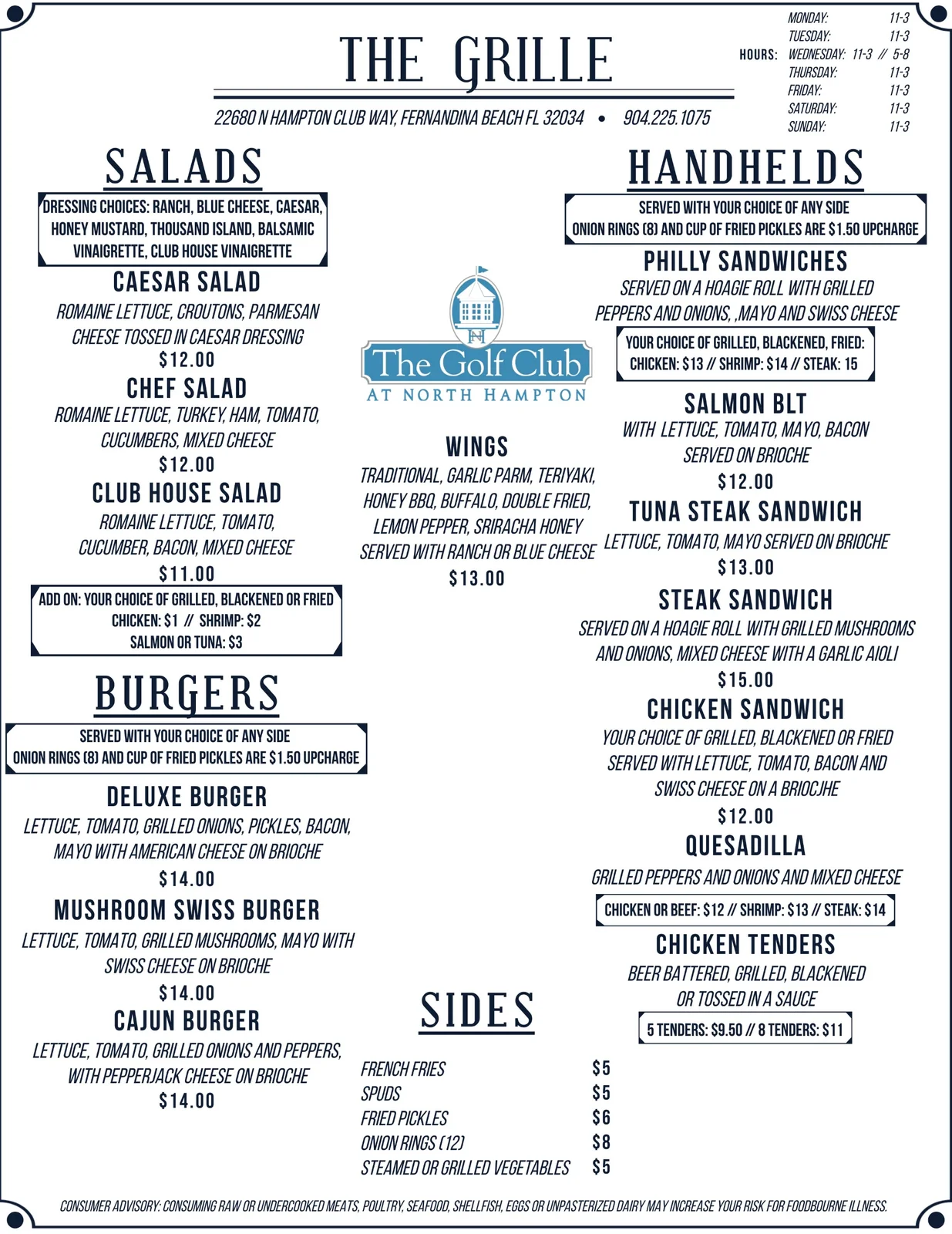 We are excited to announce our new Grille menu! Our new menu will be available NOW! Come out and dine with us! View the Menu Here. Tags:foodgrillmenunewnorth hampton