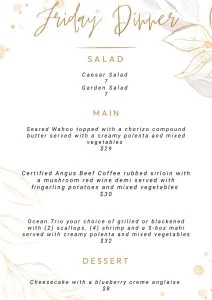 WEDNESDAY PUB NIGHT: 4:00 – 8:00 PM FRIDAY NIGHT DINNER: 5:00 – 8:00 PMSUNDAY BRUNCH: 9:00 AM – 3:00 PM
