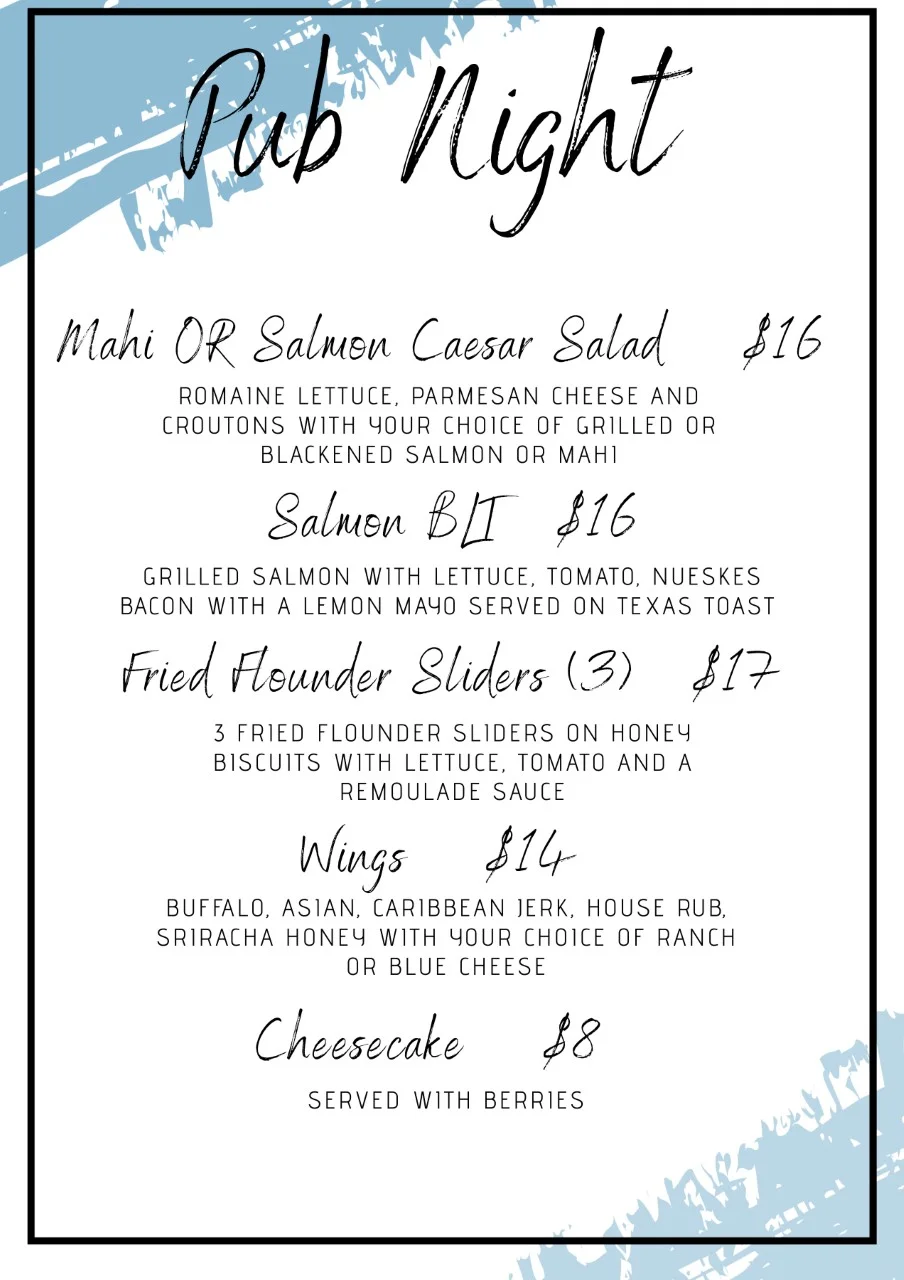 Friday Night Dinner Menu | Reserve Your Spot Now!